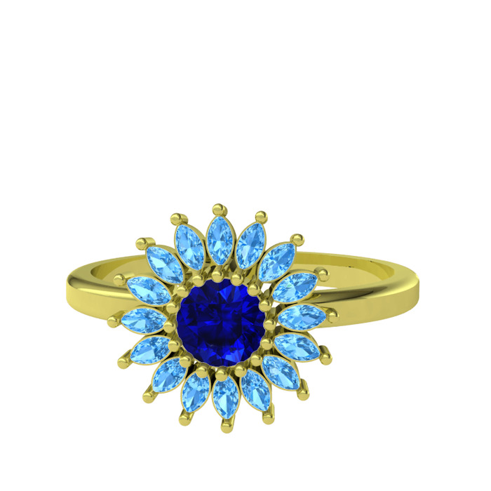 Lab safir ve akuamarin 18 ayar altın yüzük