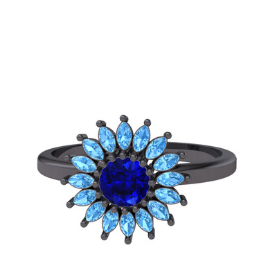 Lab safir ve akuamarin 925 ayar siyah rodyum kaplama gümüş yüzük