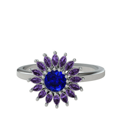 Lab safir ve ametist 14 ayar beyaz altın yüzük
