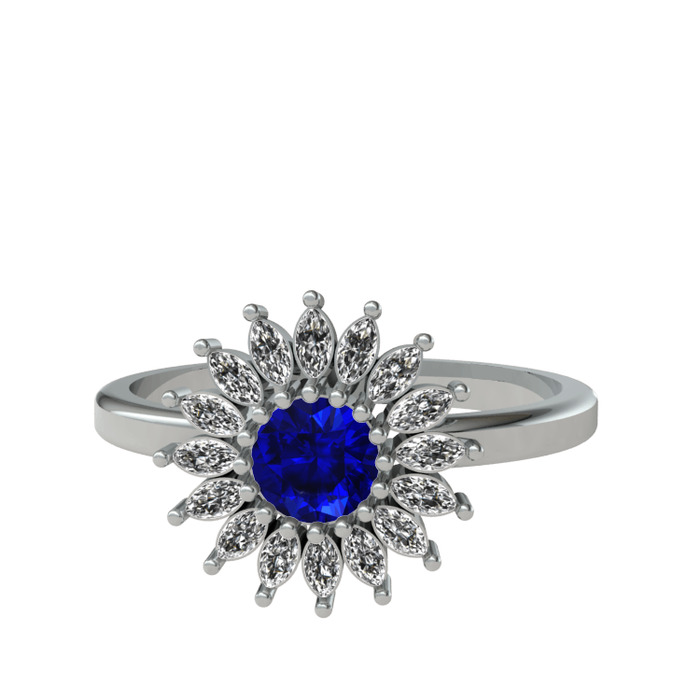 Lab safir ve beyaz zirkon 8 ayar beyaz altın yüzük