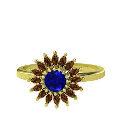 Lab safir ve dumanlı kuvars 14 ayar altın yüzük