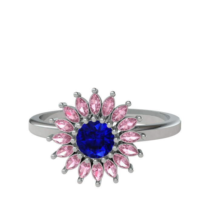 Lab safir ve pembe kuvars 925 ayar gümüş yüzük