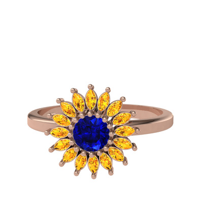 Lab safir ve sitrin 8 ayar rose altın yüzük