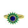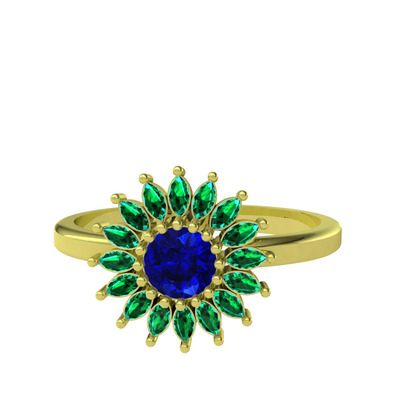 Lab safir ve yeşil kuvars 925 ayar altın kaplama gümüş yüzük