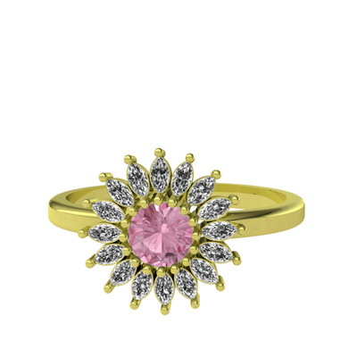 Pembe kuvars ve beyaz zirkon 925 ayar altın kaplama gümüş yüzük