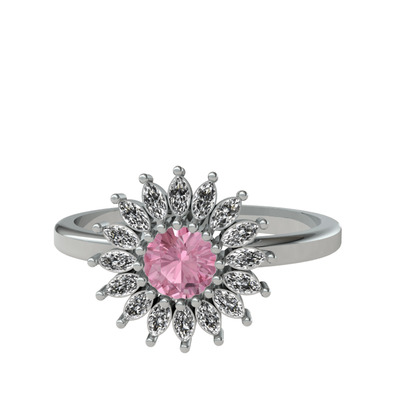 Pembe kuvars ve beyaz zirkon 925 ayar gümüş yüzük