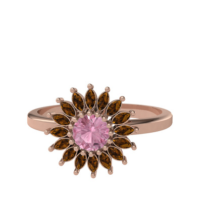 Pembe kuvars ve dumanlı kuvars 8 ayar rose altın yüzük