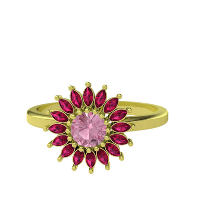 Pembe kuvars ve rodolit garnet 18 ayar altın yüzük