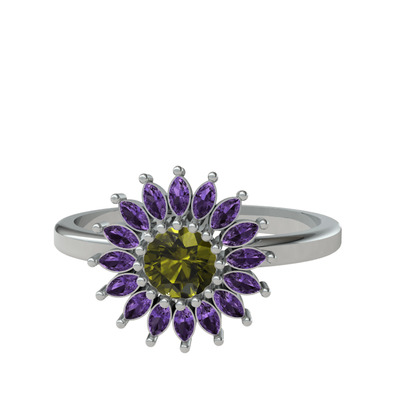 Peridot ve ametist 14 ayar beyaz altın yüzük