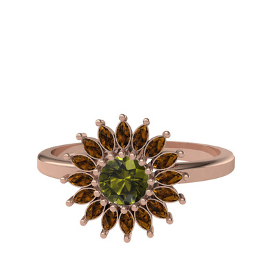 Peridot ve dumanlı kuvars 18 ayar rose altın yüzük