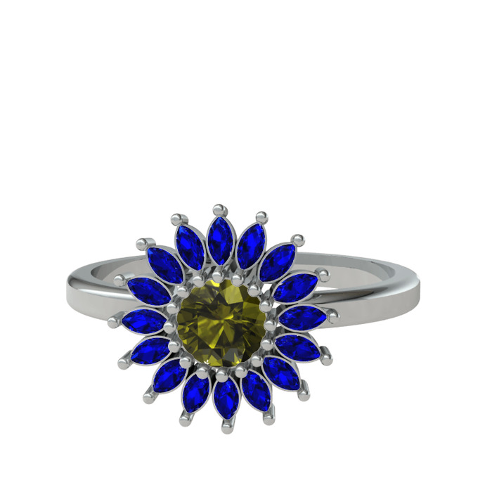 Peridot ve lab safir 14 ayar beyaz altın yüzük