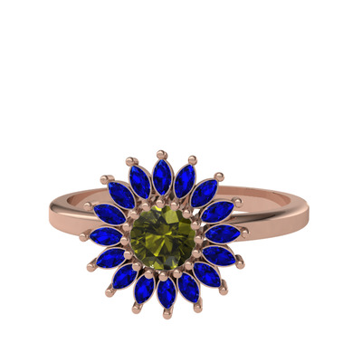 Peridot ve lab safir 8 ayar rose altın yüzük