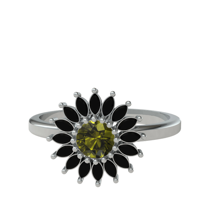 Peridot ve siyah zirkon 8 ayar beyaz altın yüzük
