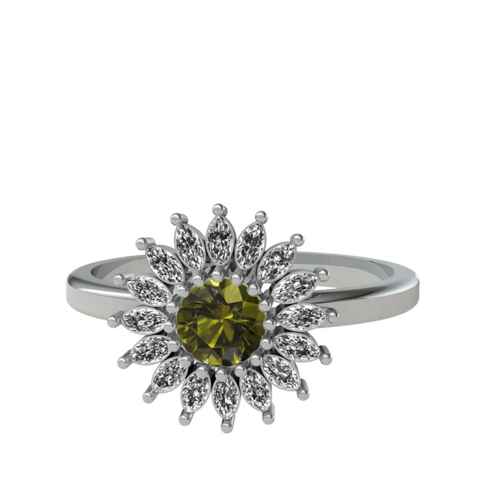 Peridot ve swarovski 8 ayar beyaz altın yüzük
