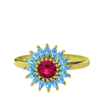 Rodolit garnet ve akuamarin 14 ayar altın yüzük