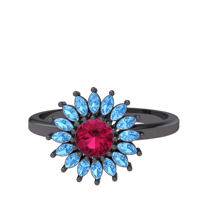Rodolit garnet ve akuamarin 925 ayar siyah rodyum kaplama gümüş yüzük