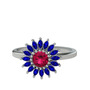 Rodolit garnet ve lab safir 14 ayar beyaz altın yüzük