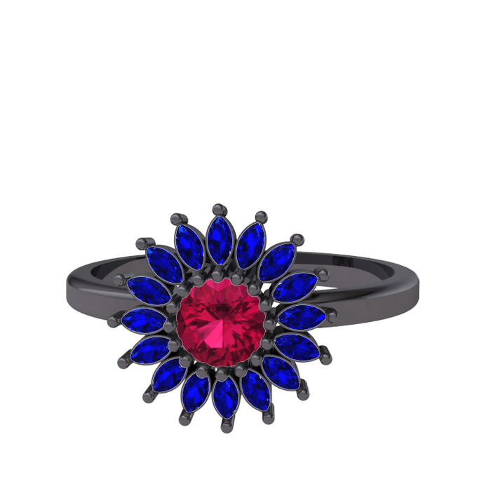 Rodolit garnet ve lab safir 925 ayar siyah rodyum kaplama gümüş yüzük