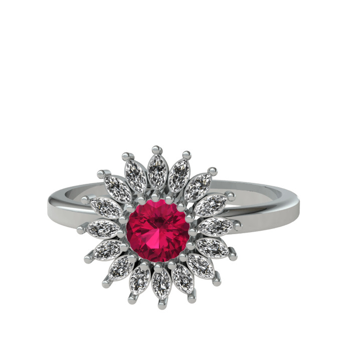 Rodolit garnet ve swarovski 14 ayar beyaz altın yüzük