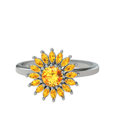Sitrin 14 ayar beyaz altın yüzük