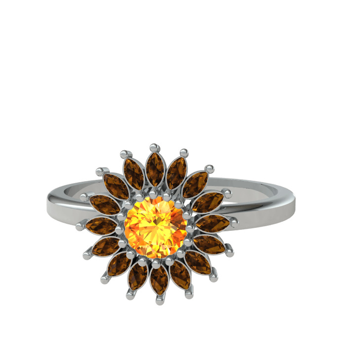 Sitrin ve dumanlı kuvars 14 ayar beyaz altın yüzük