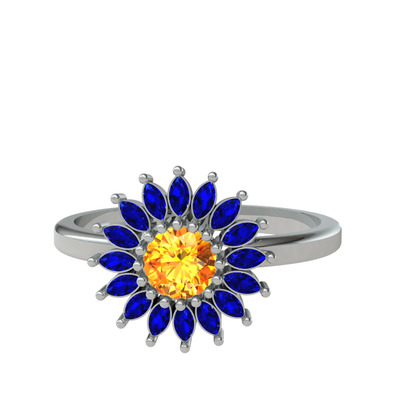 Sitrin ve lab safir 8 ayar beyaz altın yüzük
