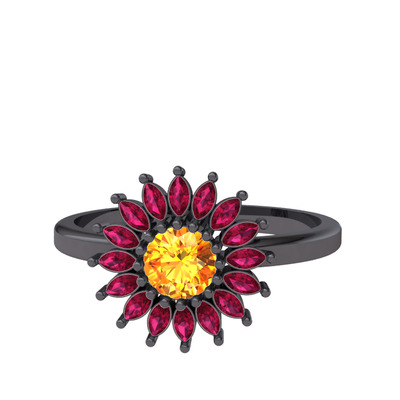Sitrin ve rodolit garnet 925 ayar siyah rodyum kaplama gümüş yüzük