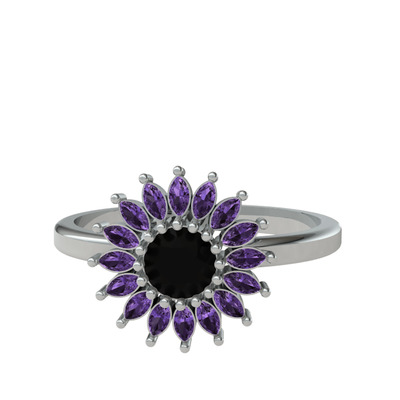 Siyah zirkon ve ametist 925 ayar gümüş yüzük
