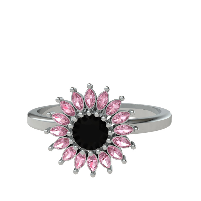 Siyah zirkon ve pembe kuvars 925 ayar gümüş yüzük
