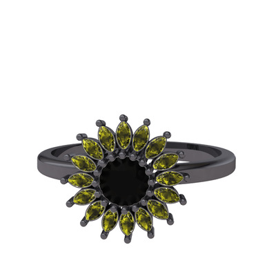 Siyah zirkon ve peridot 925 ayar siyah rodyum kaplama gümüş yüzük