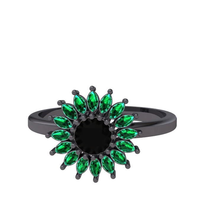 Siyah zirkon ve yeşil kuvars 925 ayar siyah rodyum kaplama gümüş yüzük