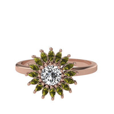 Swarovski ve peridot 925 ayar rose altın kaplama gümüş yüzük