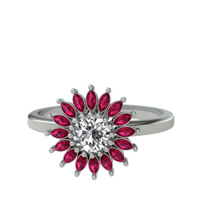 Swarovski ve rodolit garnet 14 ayar beyaz altın yüzük