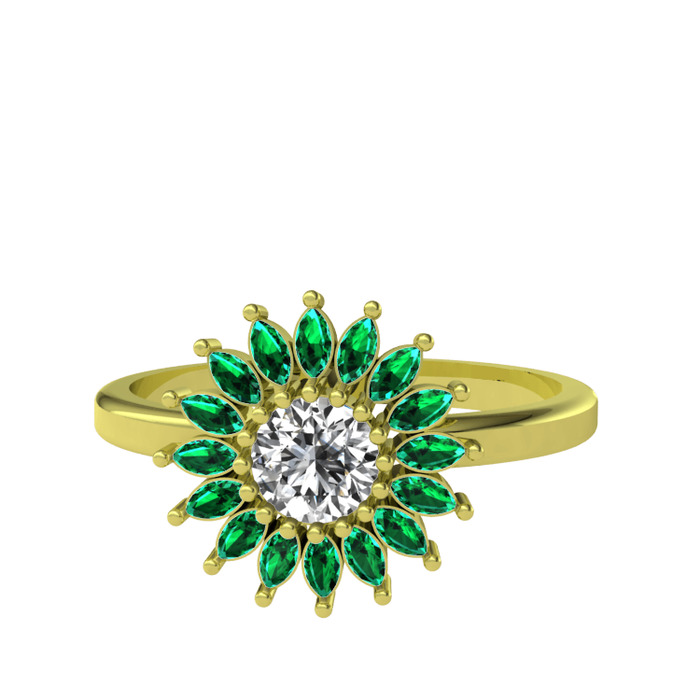 Swarovski ve yeşil kuvars 14 ayar altın yüzük