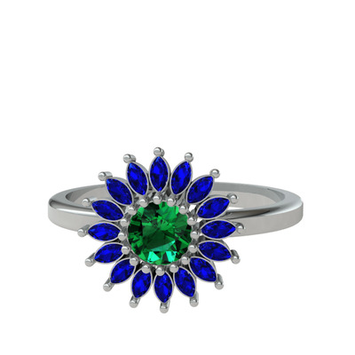 Yeşil kuvars ve lab safir 8 ayar beyaz altın yüzük