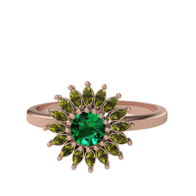Yeşil kuvars ve peridot 8 ayar rose altın yüzük