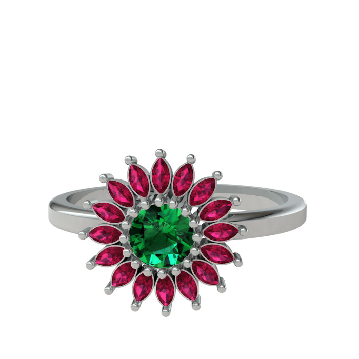Yeşil kuvars ve rodolit garnet 18 ayar beyaz altın yüzük