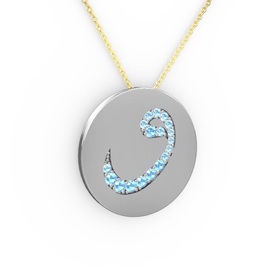 Akuamarin 14 ayar beyaz altın kolye (40 cm altın rolo zincir)