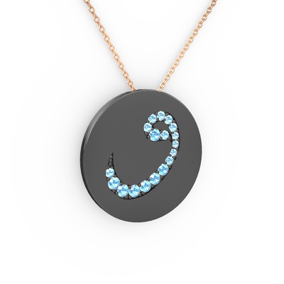 Akuamarin 925 ayar siyah rodyum kaplama gümüş kolye (40 cm rose altın rolo zincir)