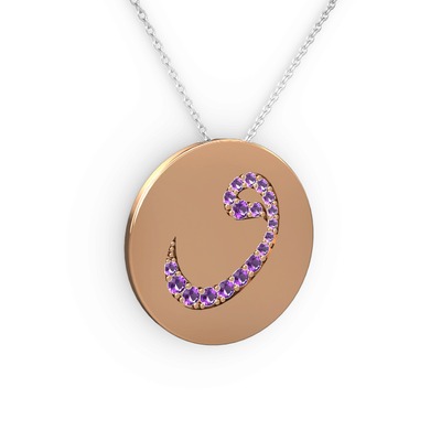 Ametist 8 ayar rose altın kolye (40 cm beyaz altın rolo zincir)
