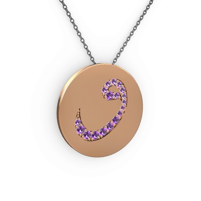 Ametist 8 ayar rose altın kolye (40 cm gümüş rolo zincir)