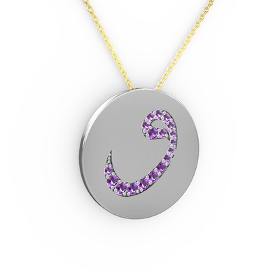 Ametist 925 ayar gümüş kolye (40 cm altın rolo zincir)