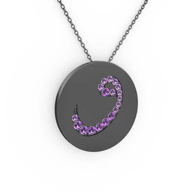Ametist 925 ayar siyah rodyum kaplama gümüş kolye (40 cm gümüş rolo zincir)