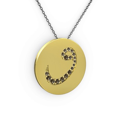 Dumanlı kuvars 8 ayar altın kolye (40 cm gümüş rolo zincir)
