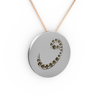 Dumanlı kuvars 8 ayar beyaz altın kolye (40 cm gümüş rolo zincir)