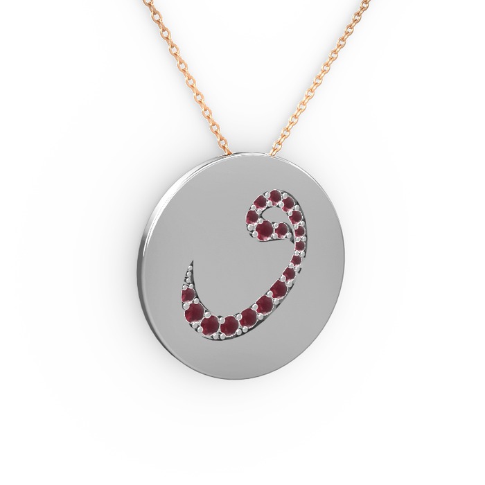 Kök yakut 18 ayar beyaz altın kolye (40 cm rose altın rolo zincir)