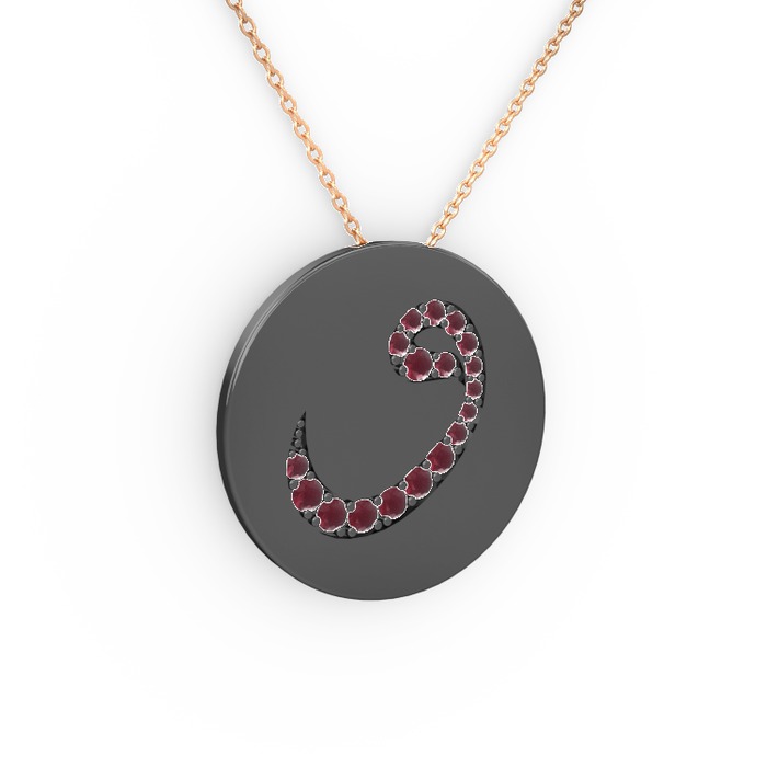 Kök yakut 925 ayar siyah rodyum kaplama gümüş kolye (40 cm rose altın rolo zincir)