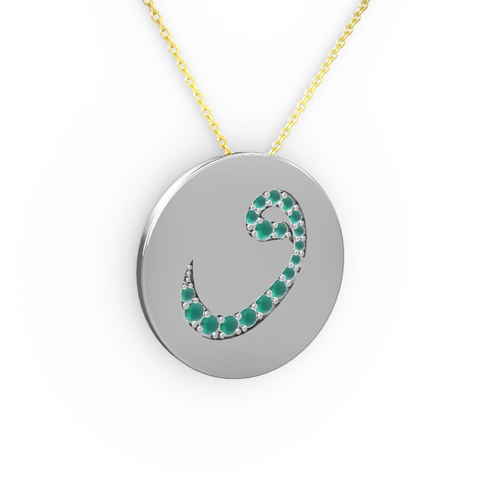 Kök zümrüt 14 ayar beyaz altın kolye (40 cm altın rolo zincir)