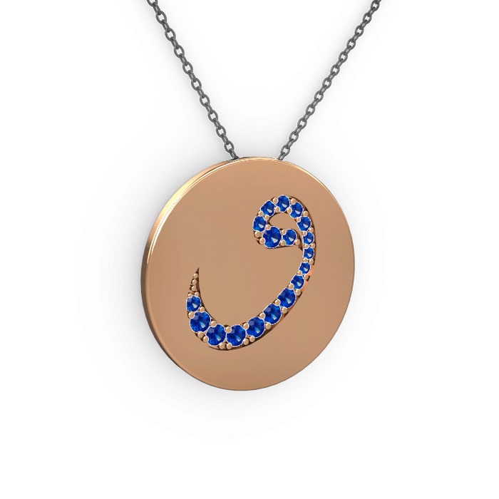 Lab safir 14 ayar rose altın kolye (40 cm gümüş rolo zincir)