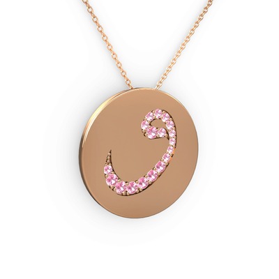 Pembe kuvars 925 ayar rose altın kaplama gümüş kolye (40 cm rose altın rolo zincir)